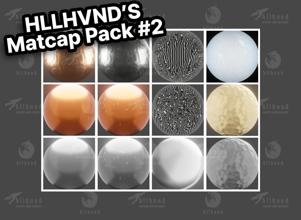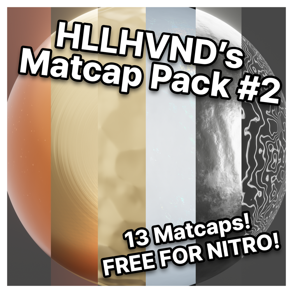12 Matcaps included in this second pack. More matcaps will come out soon. A lot of these have experimental lighting effects, and can have many uses. If you have any requests for matcap types please reach out in my discord! :)